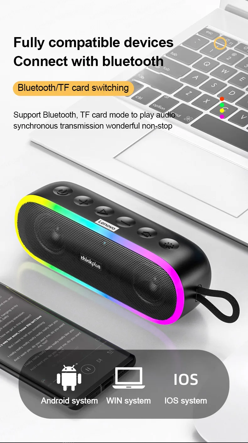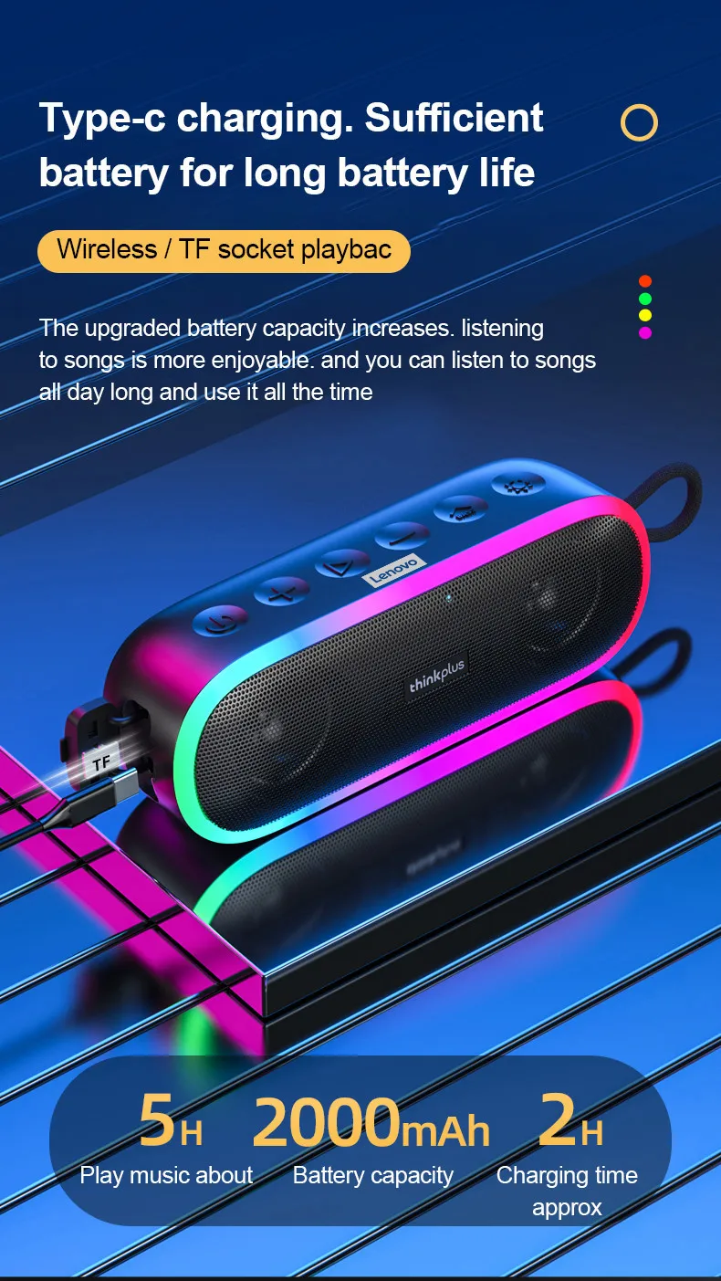 100% Original Lenovo K8 5.0 Wireless Bluetooth Speaker Portable Hifi LED Outdoor Loudspeaker Music Surround Bass Box Mic New
