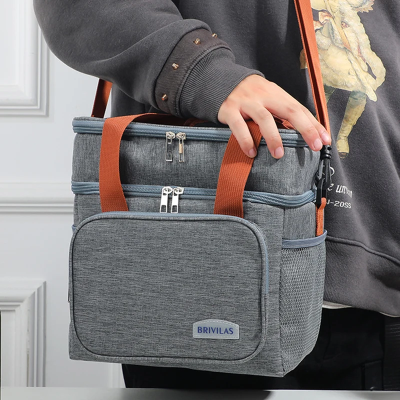 1PC Double Layer Lunch Bag Large Capacity Thermal Insulation Lunch Bags Leakproof Cooler Tote For Men Women Work Picnic School