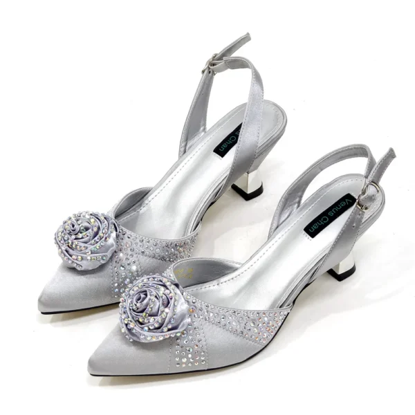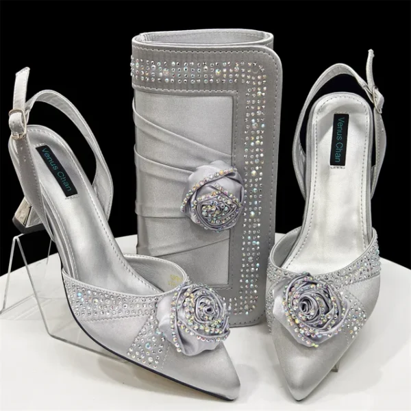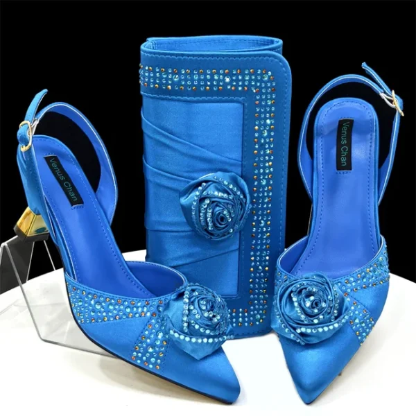 Be the first to review “2025 Nigerian Fashion Ladies Evening Shoes And Bags Paired With Handmade Petal Clutches Pointed Toe Mid-Heel Women Party Shoes”