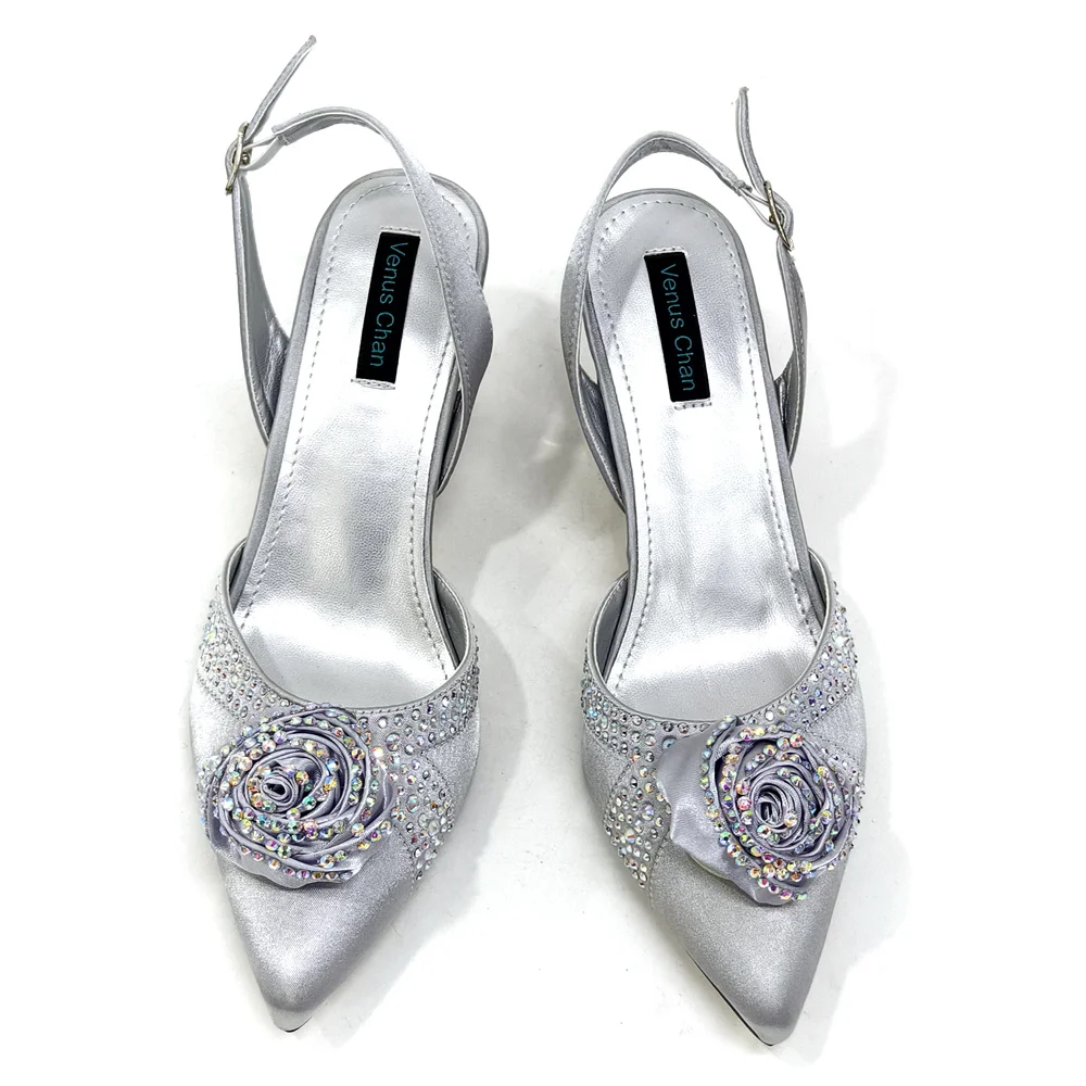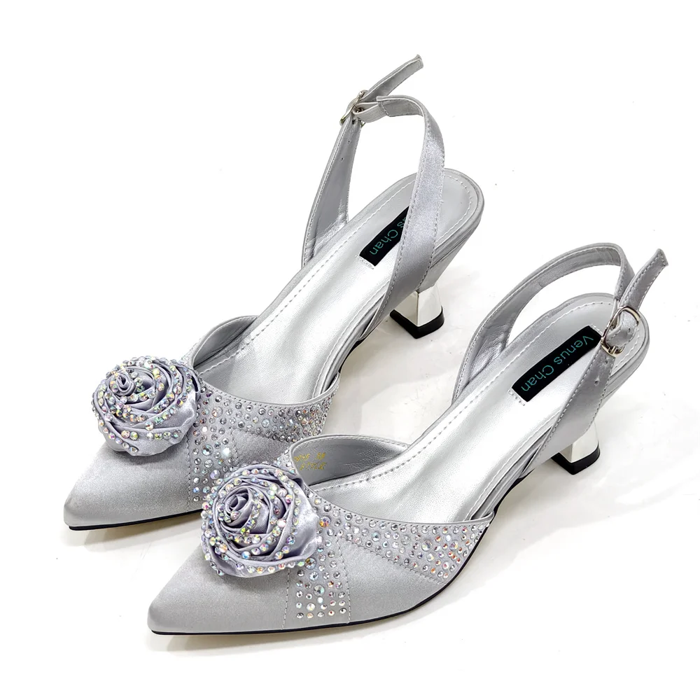 2025 Nigerian Fashion Ladies Evening Shoes And Bags Paired With Handmade Petal Clutches Pointed Toe Mid-Heel Women Party Shoes