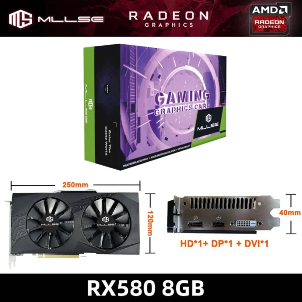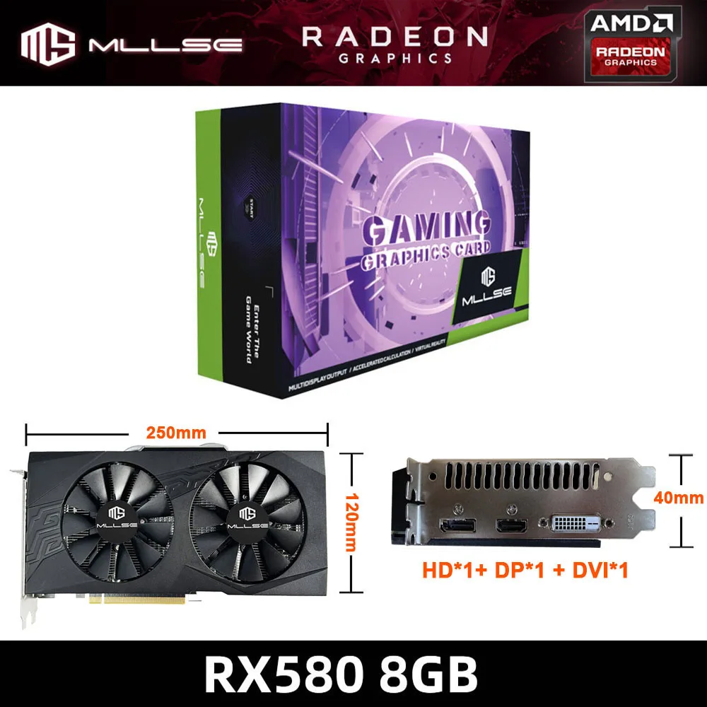 2025 Video MLLSE AMD Radeon RX 580 8GB 2048SP Graphics Card GDDR5 256-bit PCI Express 3.0 ×16 Gaming
