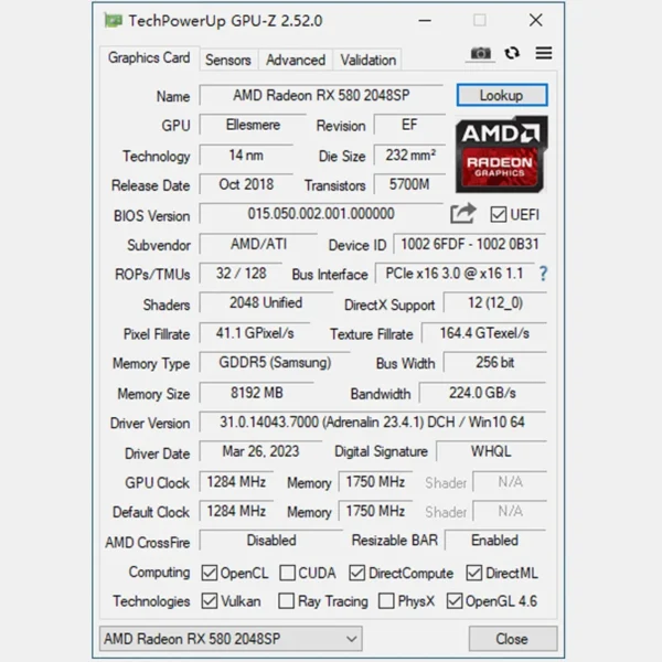Be the first to review “2025 Video MLLSE AMD Radeon RX 580 8GB 2048SP Graphics Card GDDR5 256-bit PCI Express 3.0 ×16 Gaming”