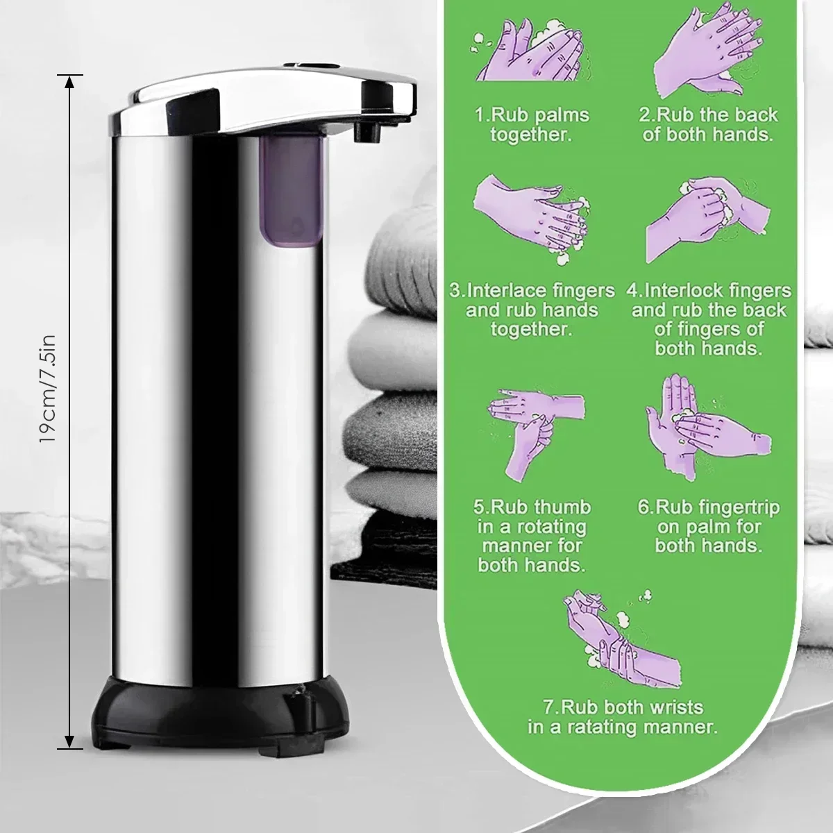[Safe Material and Waterproof] This stainless steel automatic sensor soap dispenser is made of high quality stainless steel and ABS material, long lasting and durable, with touchless dispensing design, more healthy and hygienic, the soap dispenser has a good airtight design and waterproof performance, can be used in the bathroom or sink and other locations.