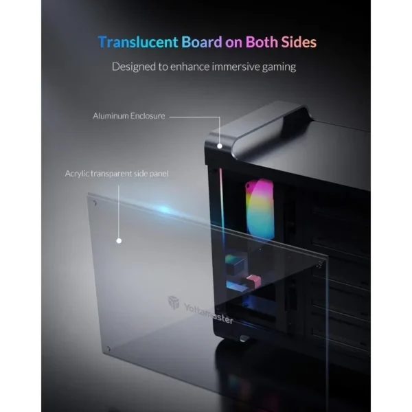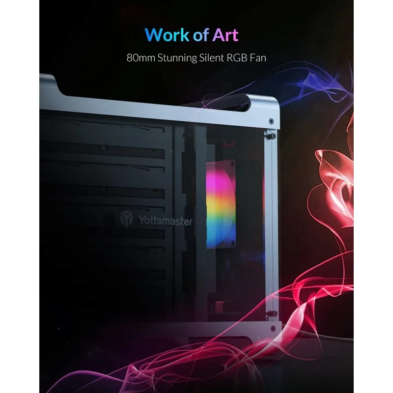 【See a Visually Stunning World】A 80mm RGB Silent Fan is located between the Translucent Frames on both sides. Lights will auto-changed from one color to the next, blursing the line between fiction and reality, and creating deepper gaming immersion. The main frame built by unibody aluminum. The large fan help to pull out the hot air from inside the enclosure, keeping the the hard drive cool during long hours of operation.