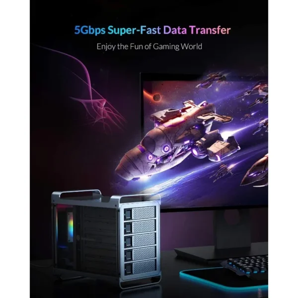 【Enjoy All Games You Like】5 bay hard drives can be mounted in this device, support with up to 90TB (5 x 18TB) large capacity. A massive collection of newest or classic games, now you can store them all together. Gamers have never had this degree of storage for what they fascinated. No longer be forced to miss out some of the truly interesting/intense games with this immense and gaming-focused external storage system.