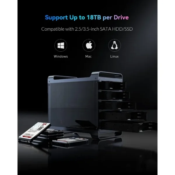 Be the first to review “5 Bay RAID Hard Drive Enclosure, Aluminum 2.5″& 3.5″ SATA HDD/SSD External Enclosure with RGB Fan, Support 90TB”