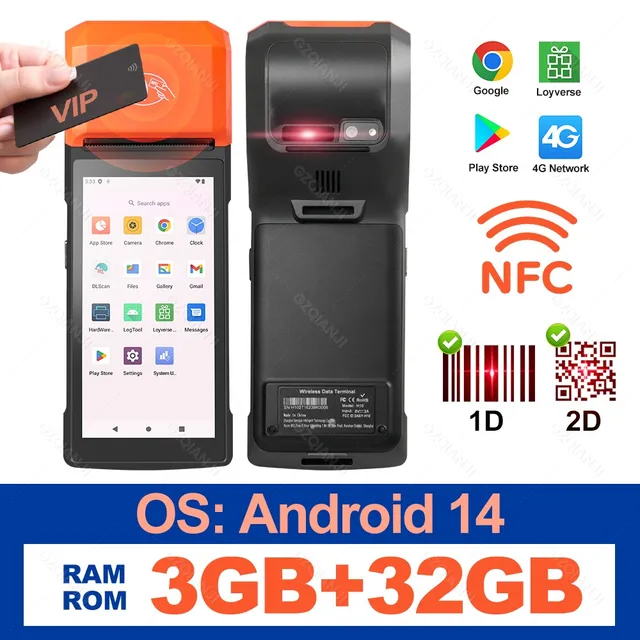 [2]Android 14(4G)+RAM3G RAM32G+NFC+2D Scanner