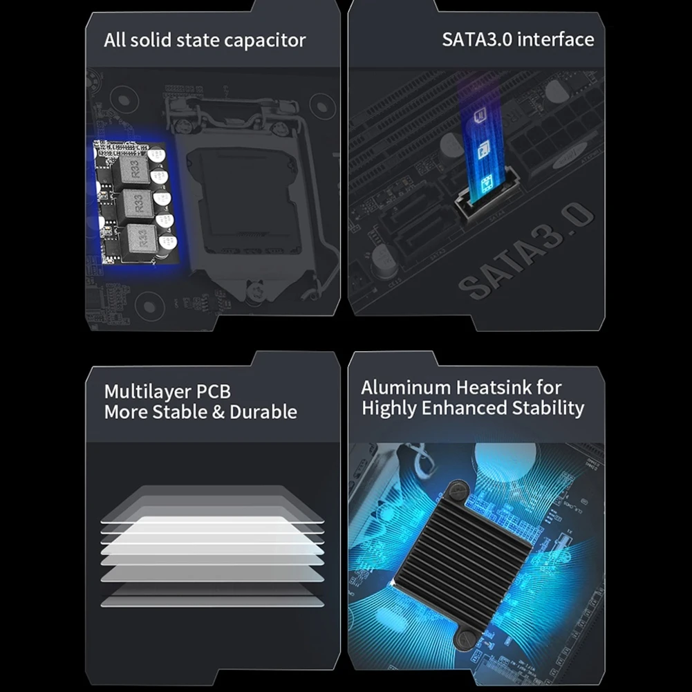 3.HD Output: Integrated hdmi-compatible and VGA dual display interfaces support high-definition video output, eliminating image trailing and providing a sharp visual experience; paired with a high-performance graphics card slot to effortlessly meet office, entertainment, or professional graphics needs.