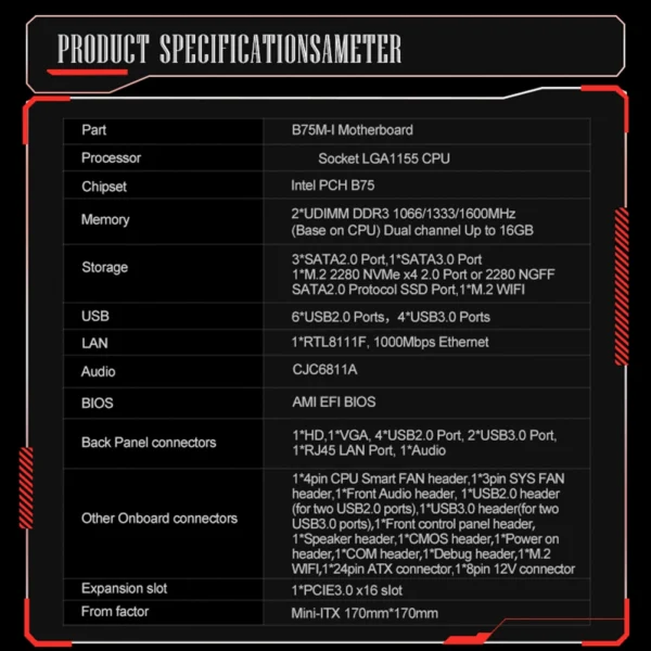 Be the first to review “B75M-I Desktop Motherboard LGA 1155 Mini-ITX DDR3 16GB Computer Motherboard Computer Main Board Support M.2 NVME HDMI+VGA”