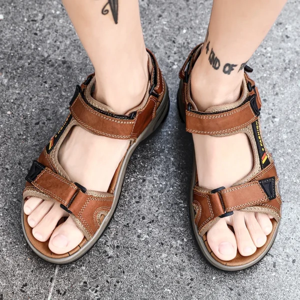 Brand Summer Men’s Sandals Genuine Leather Men Slippers Gladiator Men Beach Sandals Soft Comfortable Outdoors Wading Shoes 38-48