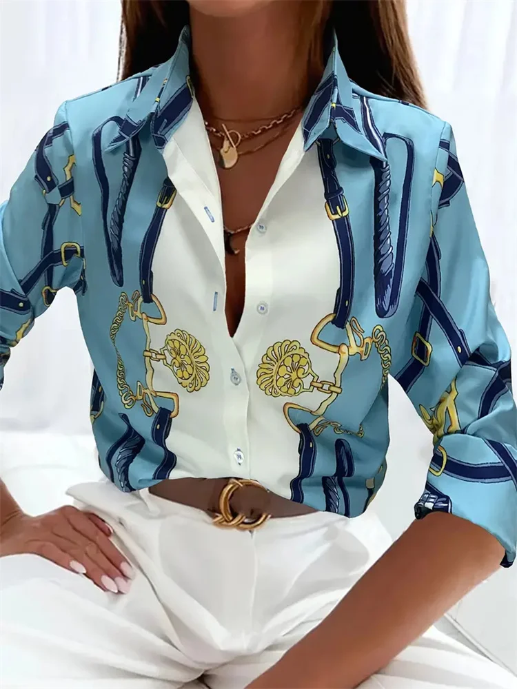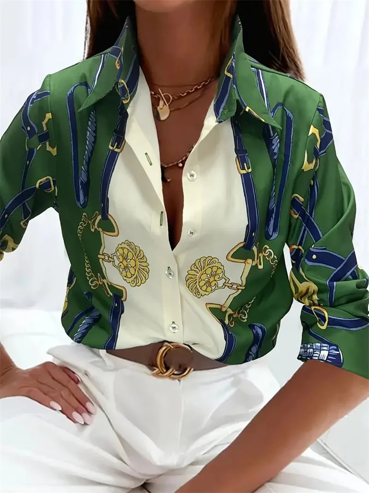 Fashion Women’s Button Top New Texture Printed Shirt Temperament Women’s Office Long Sleeve Shirt 2024 Autumn Casual Top