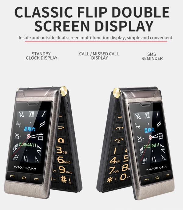 Main screen size: dual screen, internal screen 2.8 inches, external screen 2.4 inches
