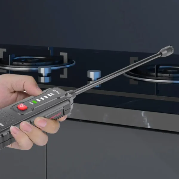 Combustible Gas Detector Adjustable Sensitivity Combustible Gas Leak Tester Portable Natural Gas Tester Detector with Audible & Visual Alarm Locate Combustible Sources Feature: 1. Portable and Versatile: This natural gas detector an trace all types of combustible gases. With its compact size and lightweight design, it is easy to carry and operate, making it a perfect tool for on-the-go use. 2. Long and Flexible Probe: The gas leak detector comes with a long and flexible stainless steel probe that can reach all areas, ensuring no corner is left unexamined. 3. Sound Semiconductor Probe with Quick Preheat: Our combustible gas detector features a sound semiconductor probe and an automatic quick preheat function, providing fast and reliable readings. 4. Instant Response and Precise Detection: The combustible gas leak tester provides an instant response, accurately locating the source of the leaks. It also includes a low battery indicator, ensuring you’re always ready for the task at hand. 5. Audible and Visual Leak Alarm: Equipped with an alarm system that includes both sound and light signals, this gas detector alarm ensures you never miss a leak. Its sensitivity can be adjusted to best suit your needs, making it an ideal choice for a variety of scenarios. Specification: Describe: Note: ![]()