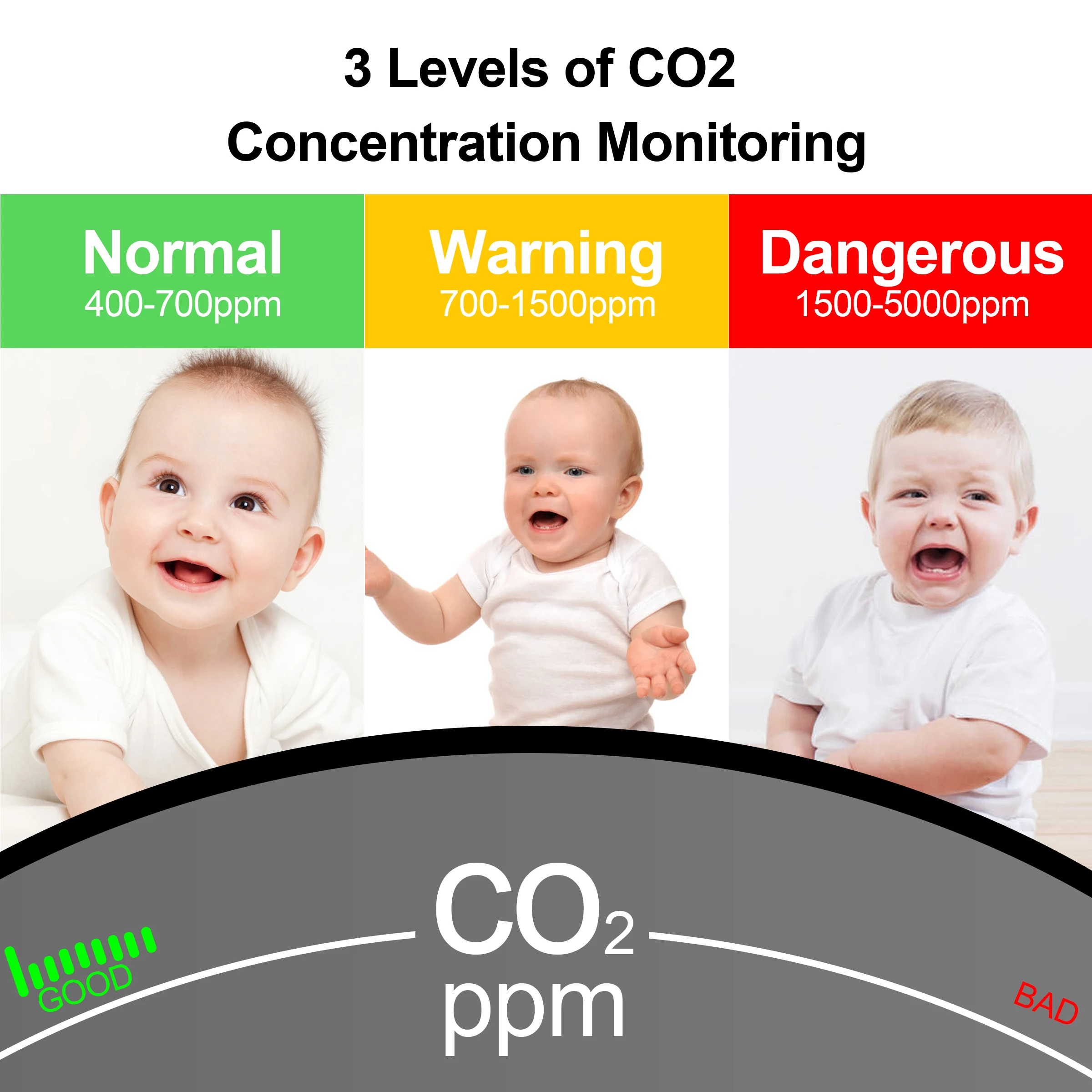 A:Of cause sure, friend. You can pair it to Tuya smart APP or Smart life APP, then you can remote monitor the CO2 concentration, temperature and humidity in APP. And you can set a alarm smart scene to monitor whether the CO2 ,temperature and humidity exceeds the normal range or not.