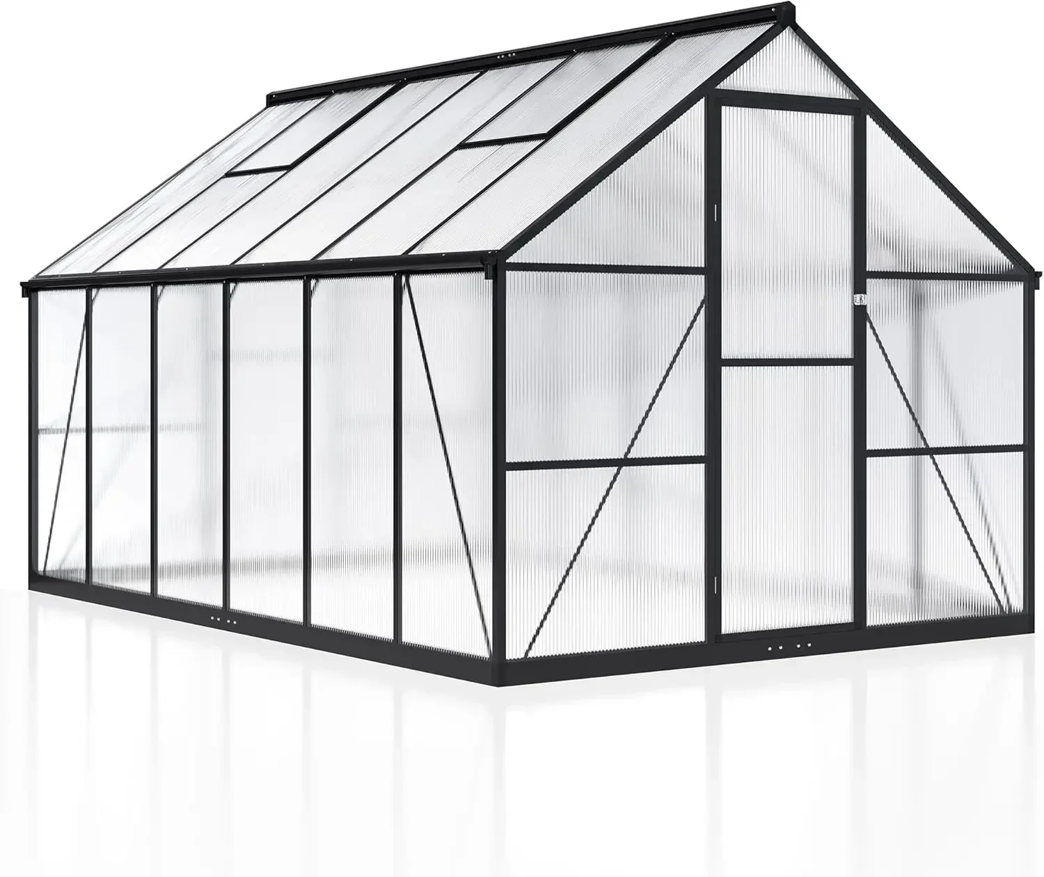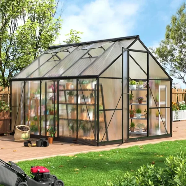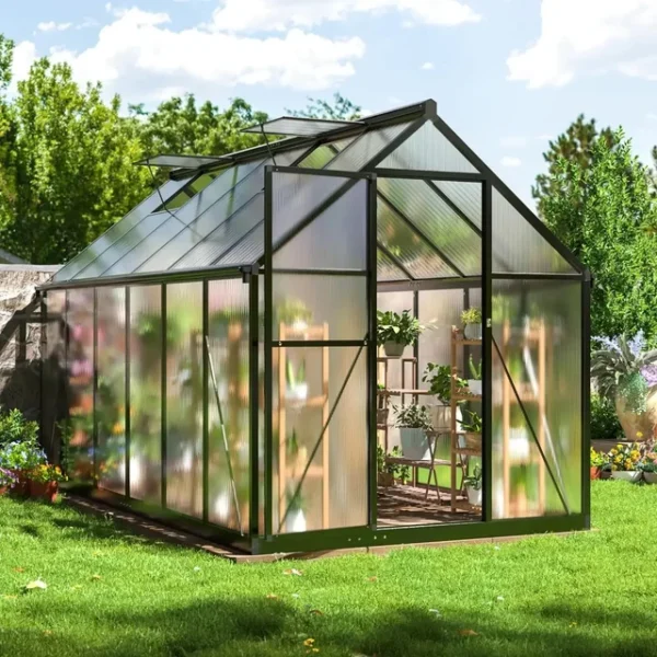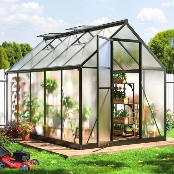 【Resistant and Sturdy】The 720g polycarbonate greenhouse features an upgraded aluminum frame for structural stability to withstand storms. It offers protection during a year-long cultivation of plants.