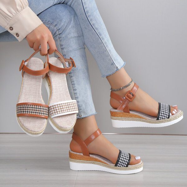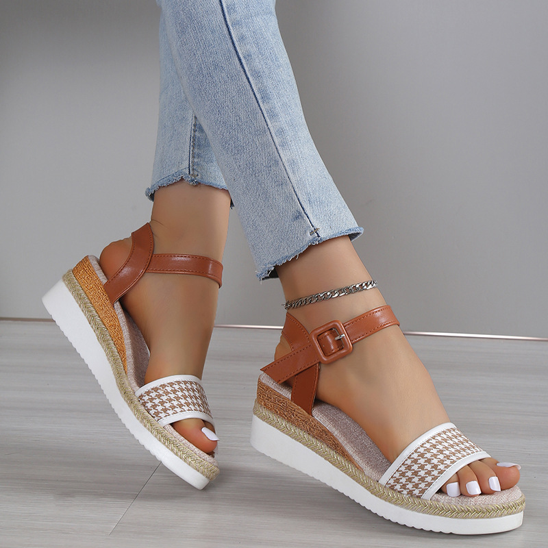 Houndstooth Print Sandals Women Summer Buckle Dress Shoes
