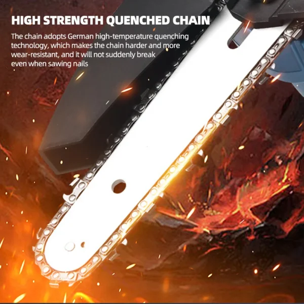 【STRONG DYNAMIC SYSTEM】 – mini chainsaw cordless adapts a high-quality guide chain that has undergone a deep quenching process to ensure smooth cutting. In addition, mini chainsaw cordless uses a pure copper motor, which is very powerful. Cutting efficiency is higher and faster.
