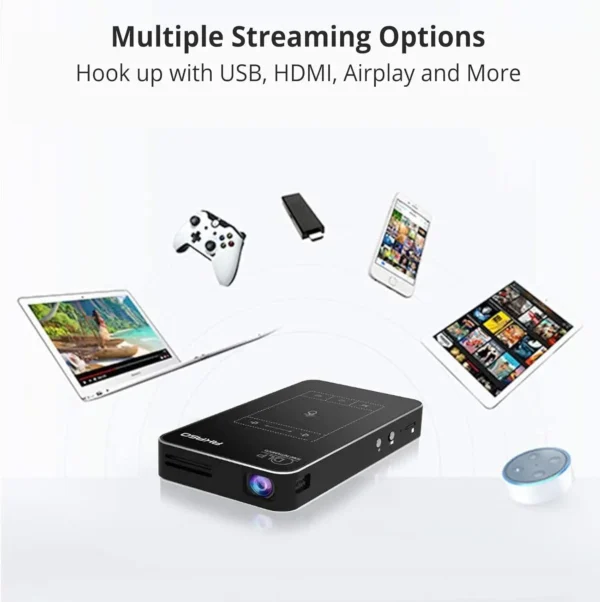 Multiple Connectivity Options: It supports various wireless screen mirroring options, allowing smartphones to connect via AirPlay, WiFi display (Miracast), EShare, or DLNA. Additionally, the projector features multiple interfaces including USB, HDMI, Audio, and Micro SD, offering flexible connectivity options for various settings, making it convenient for entertainment, education, or business purposes.