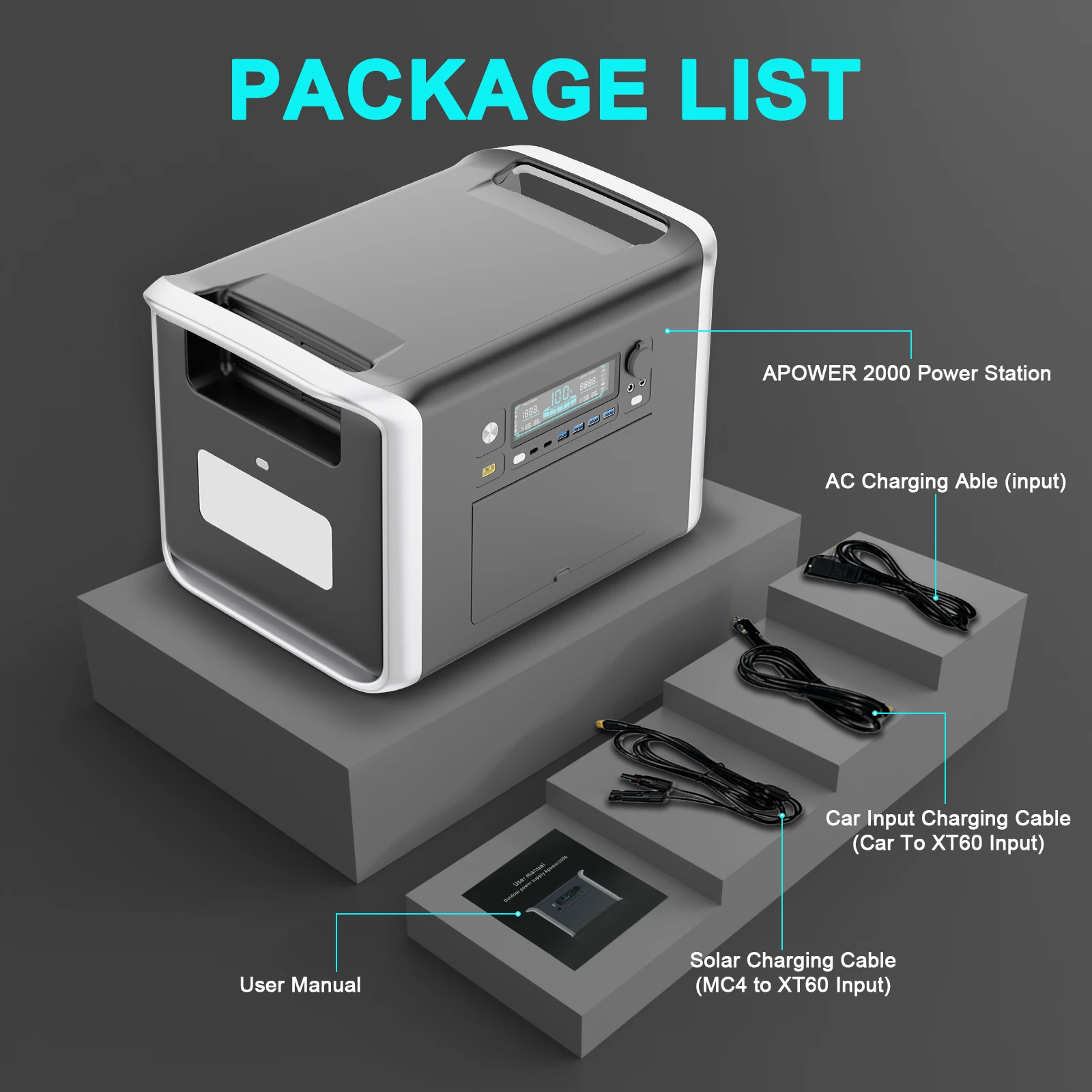 AP2000 2400W(110V);2600W(220V) 2048WH(640000MAH) LiFePo4 Portable Power Station