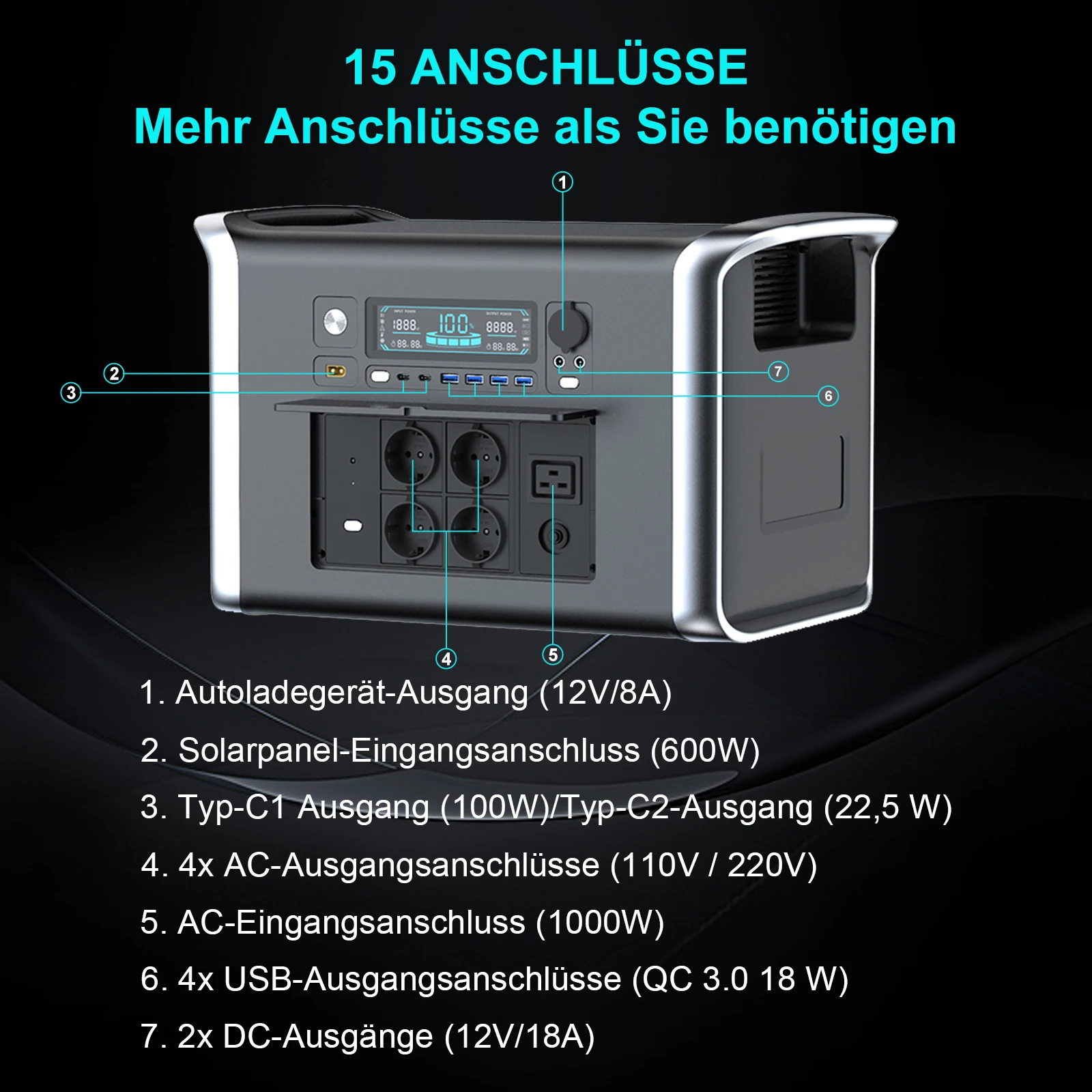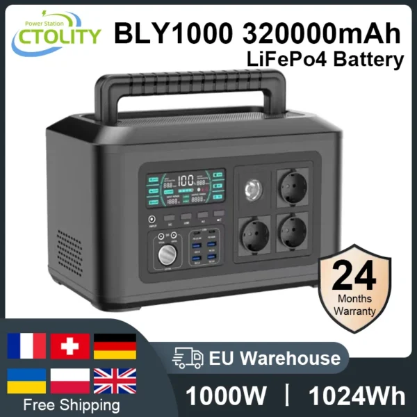 1000W RV Portable Power Station Solar Generator 110V-240V Volt AC Energy Storage Supply Outdoor Camping Campervan Travel Drone
