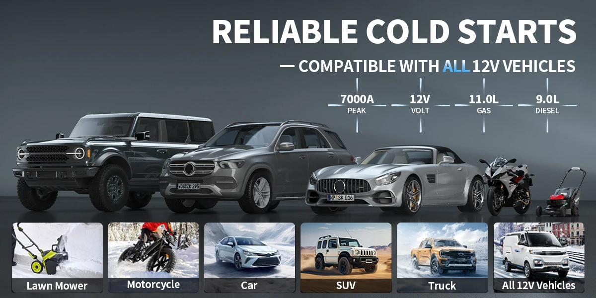 Portable Car Jump Starter With Air Compressor, 5000A Peak(7.5L Gas, 6.0L Diesel) , Jump Starter Battery PackWith150 PSl Tire Inf
