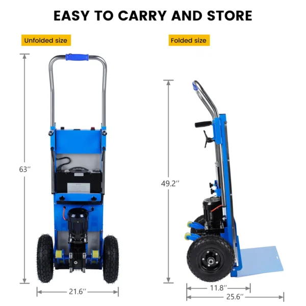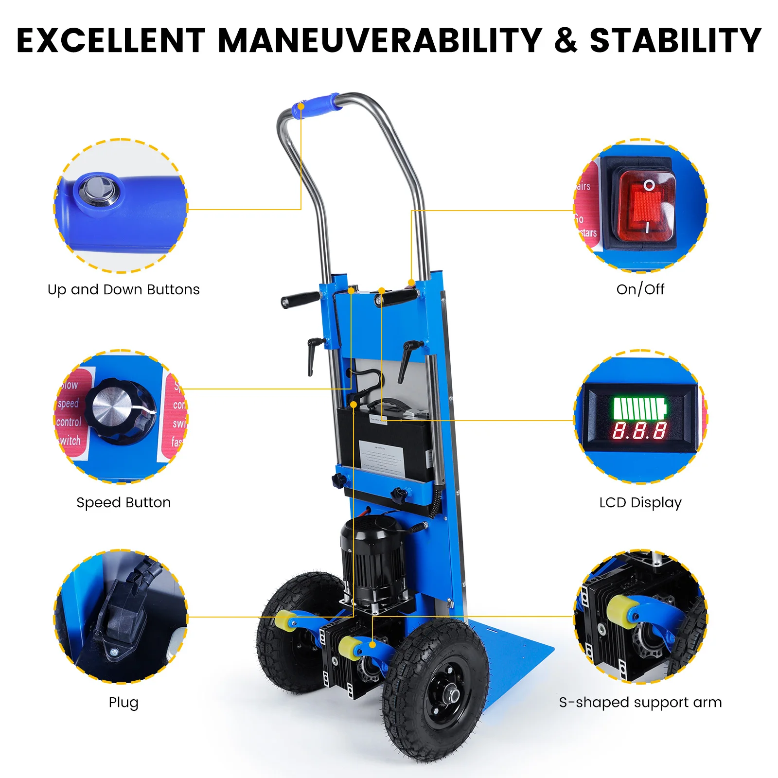 【1200W Super Powerful Brushless Motor】- The stair climbing hand trucks with a 1200W strong motor, which is faster and more efficient. The fastest crawling speed can reach 60 steps/Min. Make your handling work faster and easier.