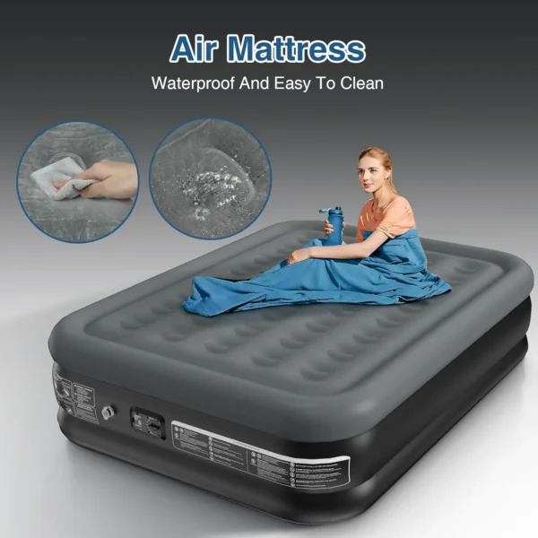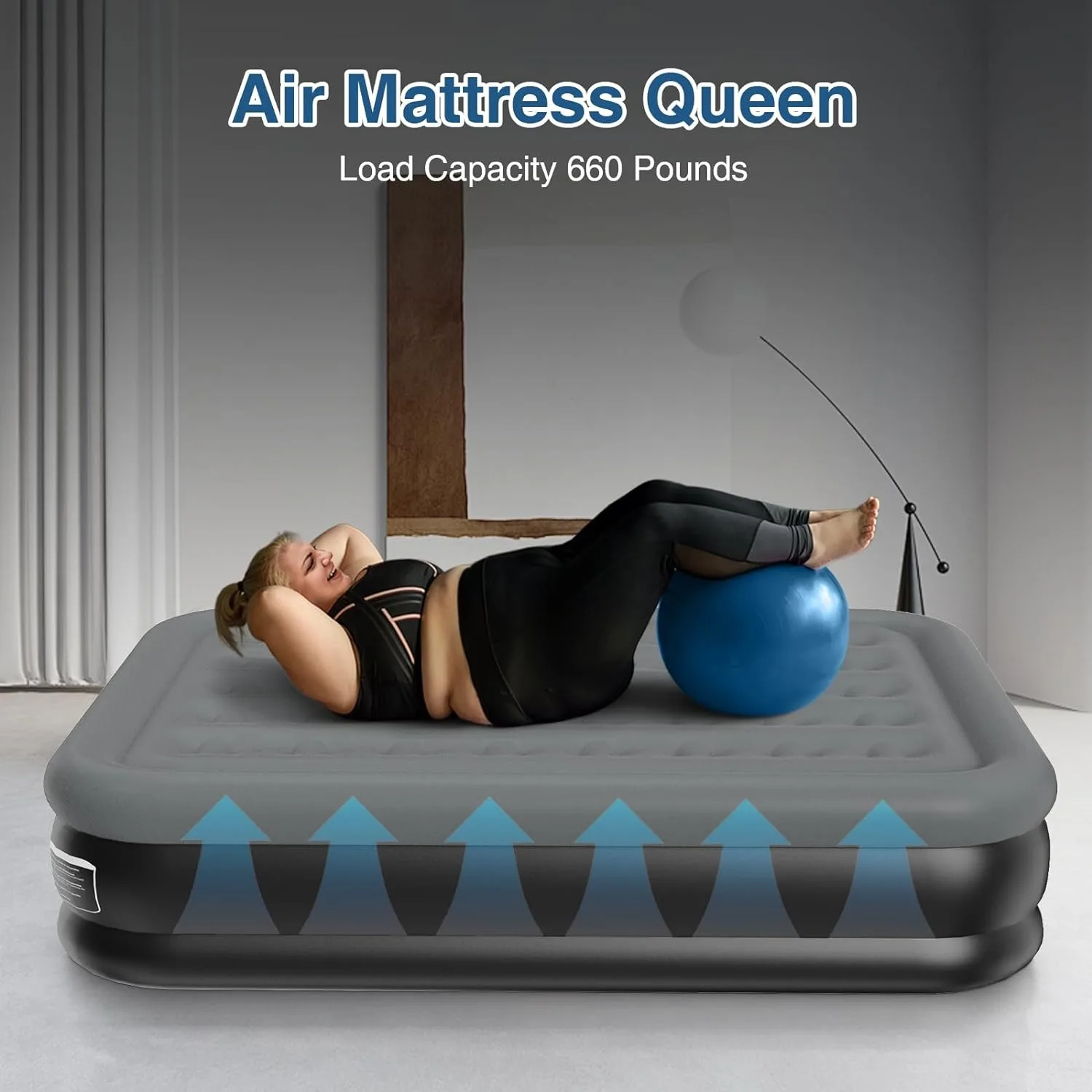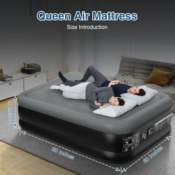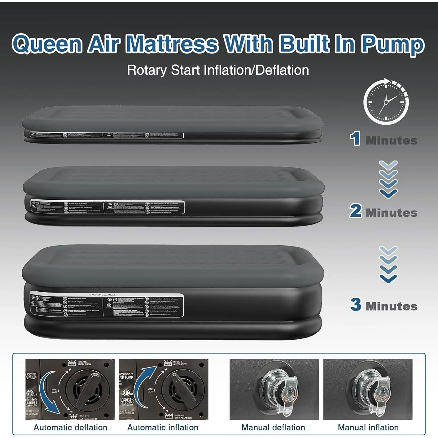 Queen Air Mattress with Built in Pump 18 Inch High Queen Air Mattress 1-3 Minutes Fast Self Inflating Air Mattress Black & Gray