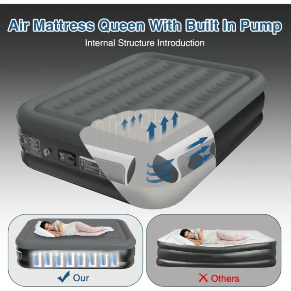 • Ultimate Sleep: The air mattress queen is made with a supportive spiral beam structure that gives you a healthier and more comfortable sleeping position, allowing you to enjoy a truly rejuvenating night’s sleep.