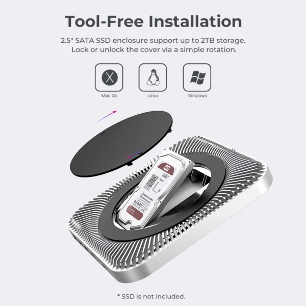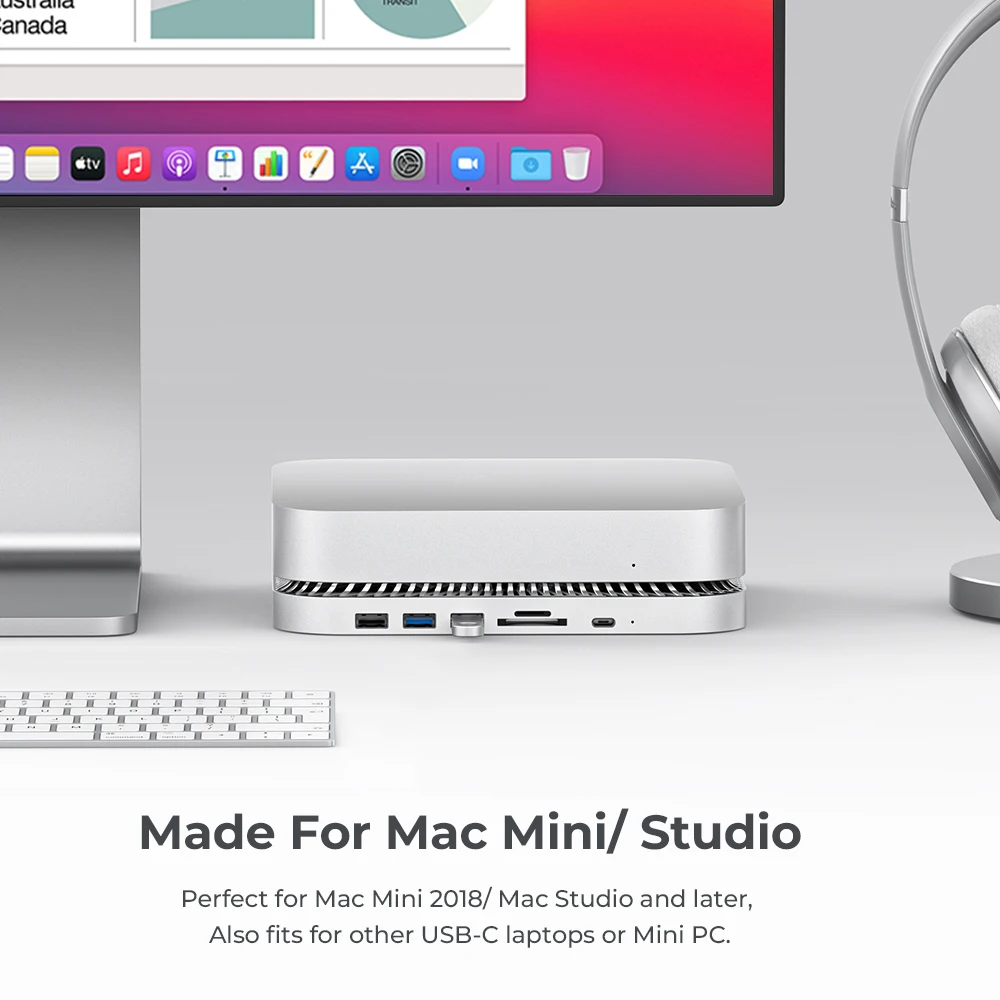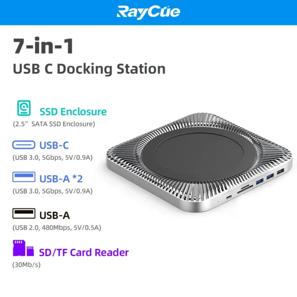 RayCue USB C Docking Station for Mac Mini Hard Drive 7 in 1 Hub HDD SATA Enclosure SD TF Card Reader USB 3.0 for Mac Studio Dock
