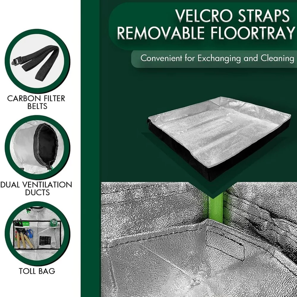 Reflective Polyester Film Hydroponic Planting Tent with Observation Window, Waterproof Floor Tray, 96x48x80 Inch