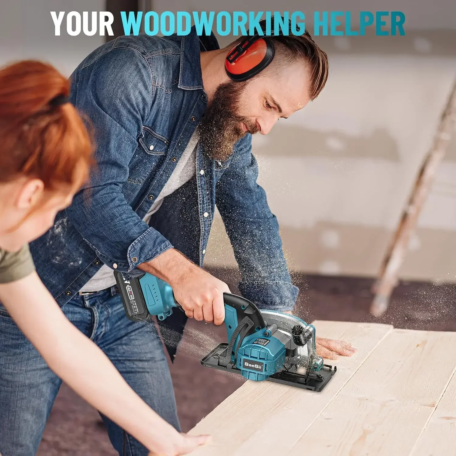 • Comfortable, One-Handed Operation: The ergonomic, lightweight design of the cordless circular saw ensures you can cut in tight spaces or work overhead without straining your arm or wrist. Perfect for quick DIY projects or extended use