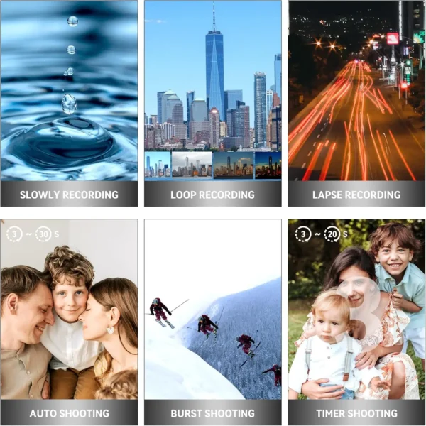 pause, time-lapse, slow motion, continuous shooting, self-timer, HDMI
