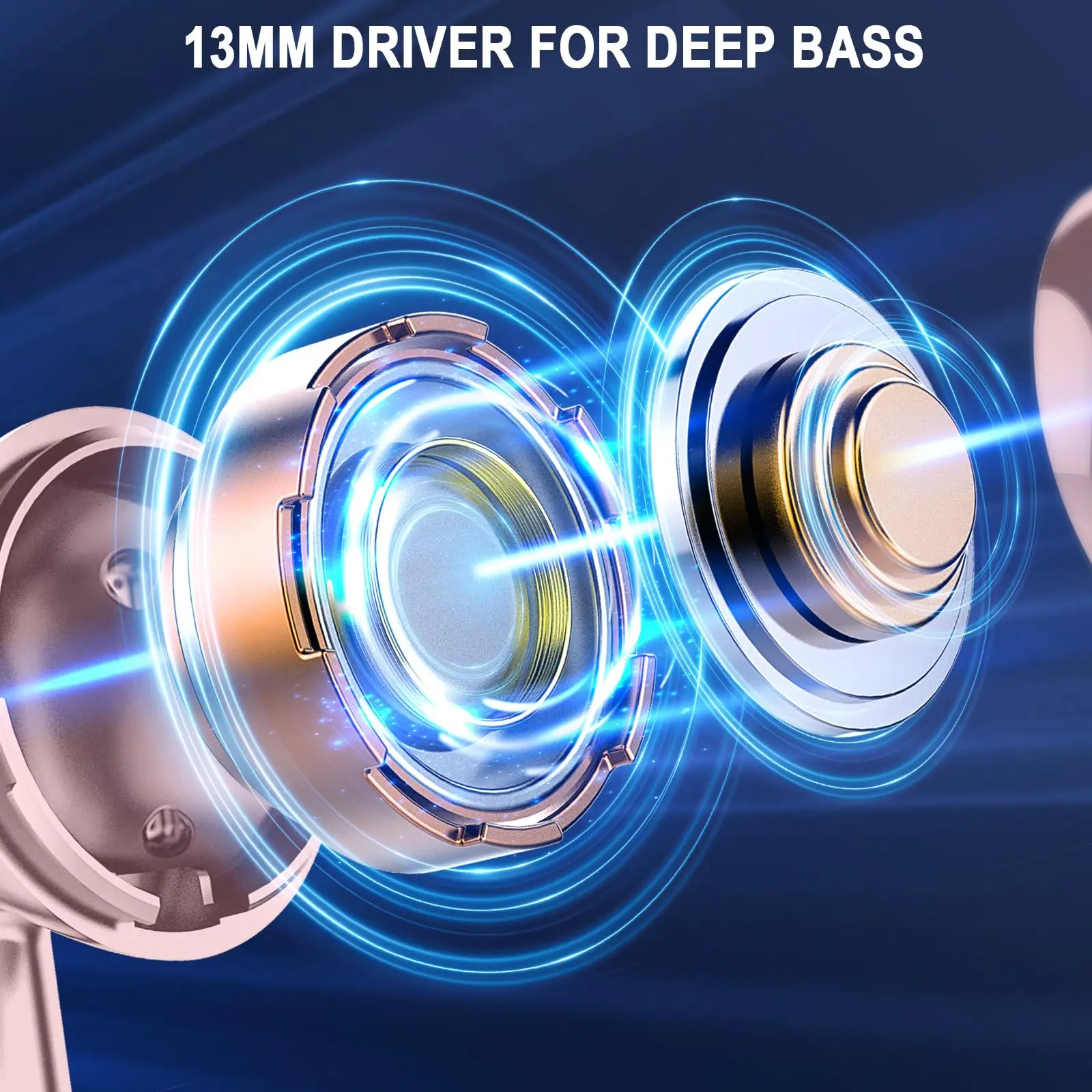 13mm Dynamic Drivers: Deliver Hi-Fi stereo sound with crisp highs and deep, rich bass for a vivid, immersive audio experience.