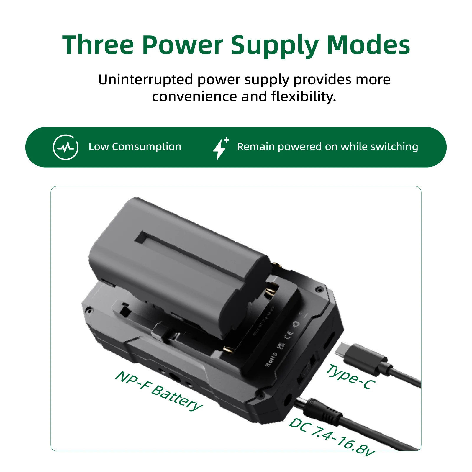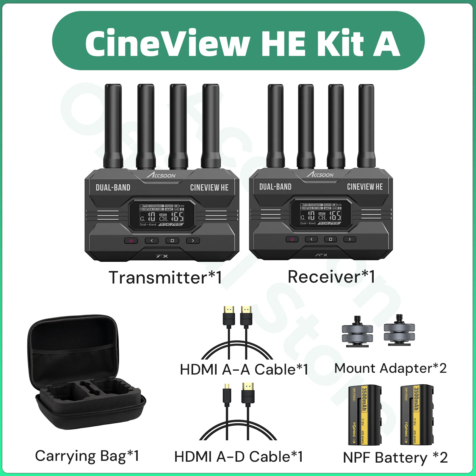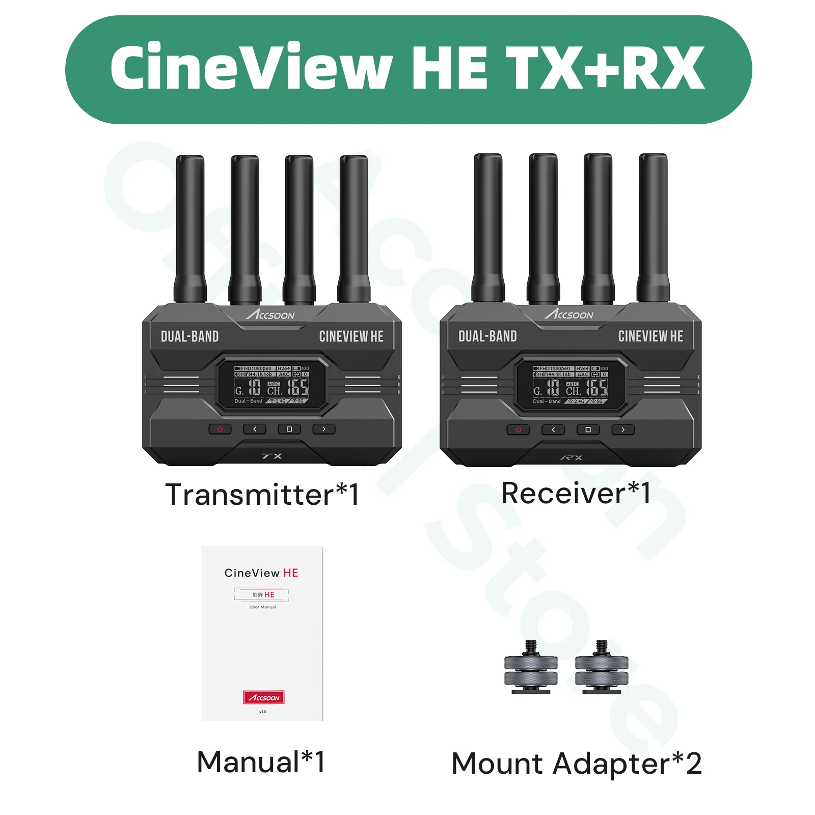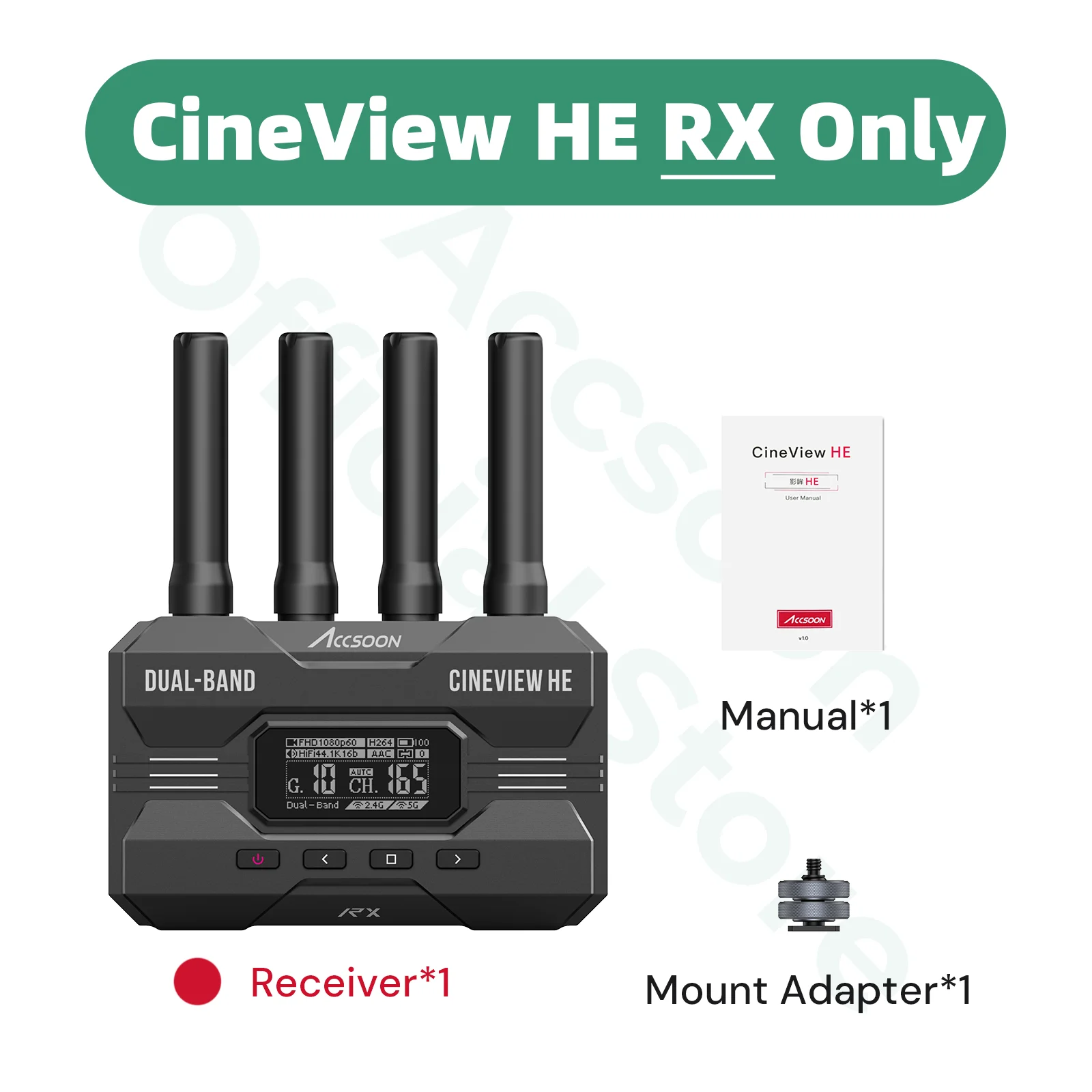 【2.4GHZ+5GHZ Daul-band Transmission】: CineView HE is equipped with Dual-Band transmission technology to bring industry-leading stability to the wireless video transmission system. Dual-Band transmission technology means you never have to worry about video or audio drop or switch signal issues again.