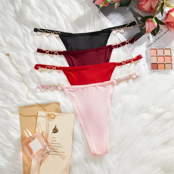 Women Sexy Thongs Low Rise Ladies G-string Heart Decoration Erotic Intimate Lingerie T-Back New Fashion Cotton Crotch Panties