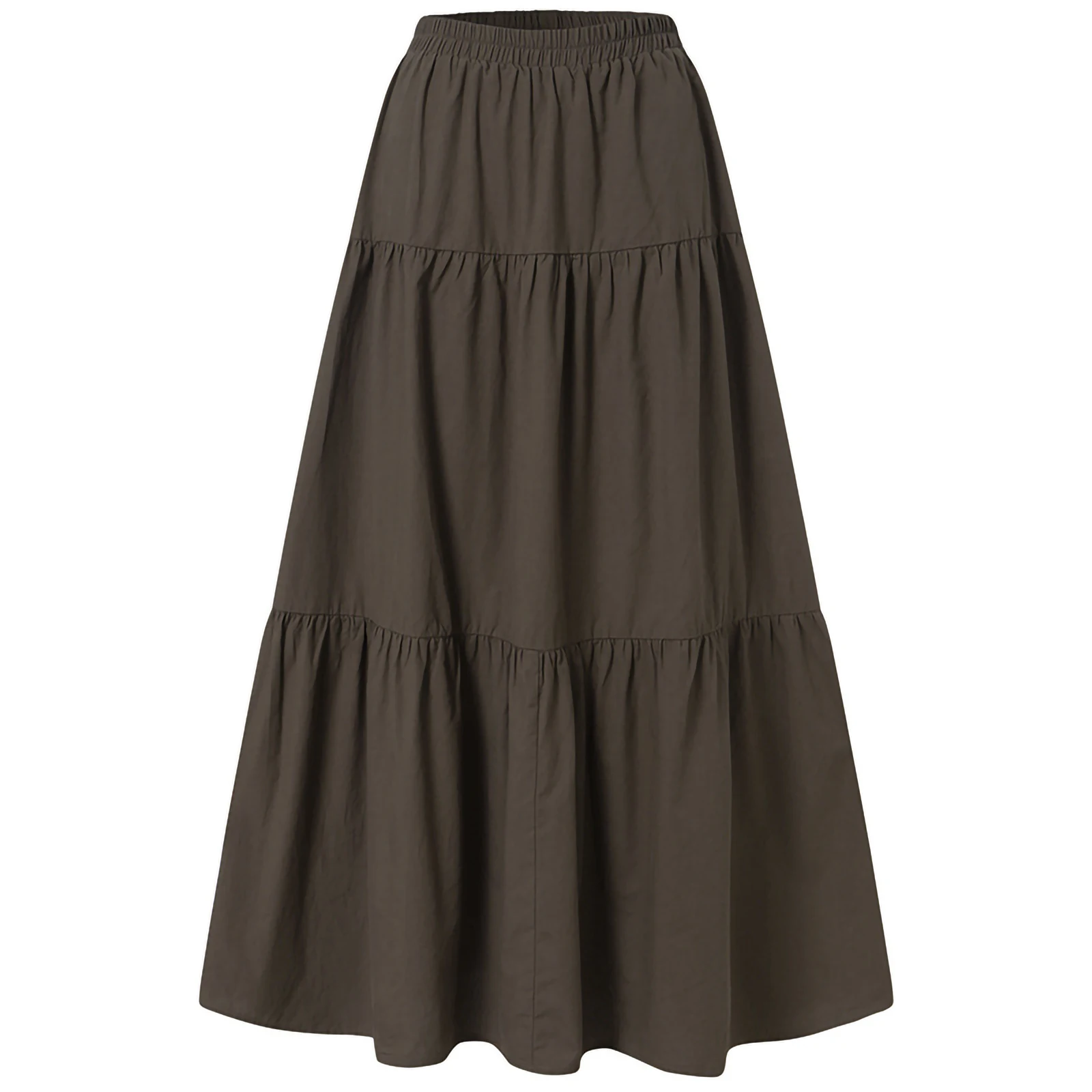 Women´s Casual Long Skirts, Solid Color Pleated Big Hem Elastic Waist Loose Fit Skirts, Simple Style Bottoms